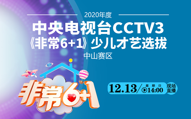 2020年度中央電視臺CCTV3《非常6+1》少兒才藝選拔中山賽區(qū)復賽將于12月13日下午2點舉行,中山日報報業(yè)集團·中山網(wǎng)全程直播,敬請關(guān)注!