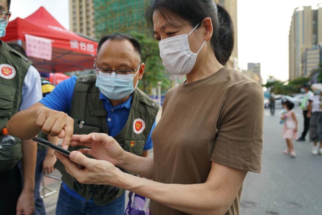 退役軍人志愿者協(xié)助前來進(jìn)行核酸檢測(cè)的市民登記信息。(攝影:李盛歡) 退役軍人志愿者們按照分工安排,提供維持秩序、檢查粵康碼、測(cè)量體溫、協(xié)助前來檢測(cè)的市民登記信息等服務(wù)。在志愿者們的引導(dǎo)下,現(xiàn)場(chǎng)秩序井然,檢測(cè)工作快速高效。