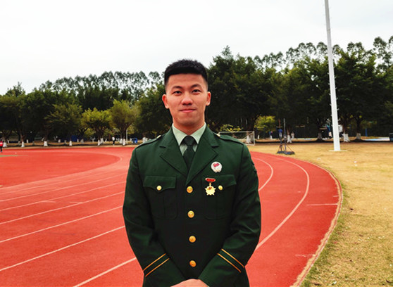 “小時(shí)候,我看過一部名為《烈火雄心》的電視劇,講的是消防員奮勇?lián)尵壬?,以濃煙考?yàn)斗志、以烈火洗煉人生的故事,那時(shí)我就對(duì)執(zhí)行任務(wù)類型的職業(yè)非常向往。再加上男生打小對(duì)飛機(jī)、槍支武器都有一種特殊的感覺,那時(shí)候就在想,有機(jī)會(huì)一定要去部隊(duì)歷練一番試試。”任伯聰告訴記者,大二那年,他終于夢(mèng)圓軍營,服役于武警河南總隊(duì)某中隊(duì)。“3個(gè)月的新兵連非常充實(shí),隊(duì)列訓(xùn)練、拉練、長途行軍......讓我印象深刻的是在行軍過程中,不管去到什么地方,只要一身軍裝在身,當(dāng)?shù)氐男∨笥讯紩?huì)朝我敬禮,老百姓也特別友善,讓我感到非常自豪,這種軍民魚水情讓我感覺非常好?!?/p> 服役期間,因表現(xiàn)突出,任伯聰被評(píng)為“優(yōu)秀義務(wù)兵”,于2019年退出現(xiàn)役。離開部隊(duì)后,他重返大學(xué)校園完成學(xué)業(yè),并加入了學(xué)校的國防教育服務(wù)中心,為學(xué)校的征兵宣傳工作奔走發(fā)聲。在校期間,任伯聰從未忘記自己曾經(jīng)是一名軍人。“我堅(jiān)持每天長跑10公里,練習(xí)單杠,也一直有按照之前部隊(duì)的訓(xùn)練標(biāo)準(zhǔn)來保持鍛煉?!?/p>  左一為任伯聰。