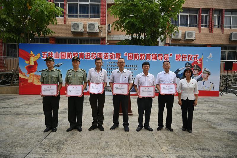 五桂山學(xué)校校長陳玉玲現(xiàn)場為6名國防教育輔導(dǎo)員頒發(fā)聘任證書,這意味著中山首批6名“國防教育輔導(dǎo)員”正式上崗。據(jù)了解,此次聘請的國防教育輔導(dǎo)員有軍隊轉(zhuǎn)業(yè)干部、參戰(zhàn)退伍老兵、革命老戰(zhàn)士后代、優(yōu)秀共產(chǎn)黨員、武裝部專武干部、村(社區(qū))民兵連干部及優(yōu)秀基干民兵。國防教育輔導(dǎo)員將協(xié)助學(xué)校開展軍事訓(xùn)練、為學(xué)校中小學(xué)生進(jìn)行國防教育授課、圍繞建軍節(jié)、國慶節(jié)、全民國防教育日等節(jié)日開展進(jìn)校園宣傳教育活動,將國防教育融入愛國主義教育課題,引導(dǎo)學(xué)生牢記歷史、不忘過去,緬懷先烈、面向未來,激發(fā)愛黨愛國熱情,凝聚奮進(jìn)力量。