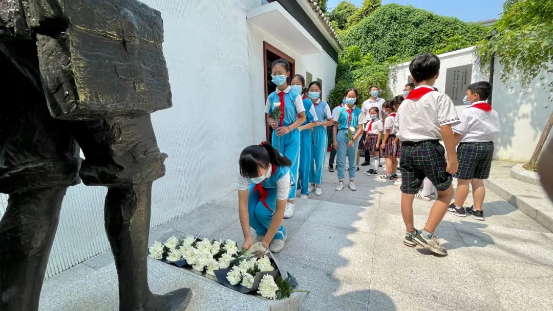 ▲在沙溪鎮(zhèn)黨委委員李海龍、副鎮(zhèn)長候選人余添宏帶領下,按順序依次向楊麗容烈士雕塑獻花。
