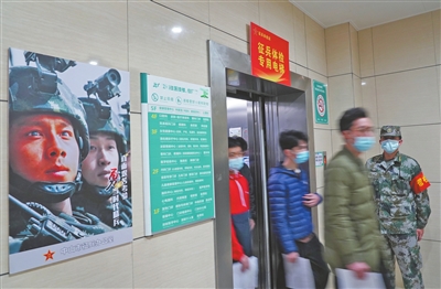 在體檢集合處,“參軍報國,無上光榮”等字眼隨處可見。