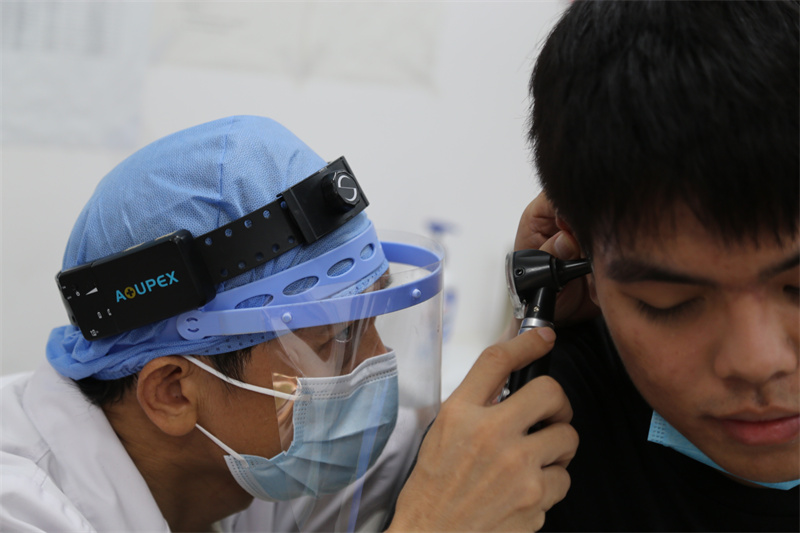 南區(qū)醫(yī)院抽調(diào)各業(yè)務(wù)科室30余名骨干組成征兵體檢隊,嚴(yán)格按照征兵體檢程序和規(guī)范組織開展兵檢工作,對照《應(yīng)征公民體格檢查標(biāo)準(zhǔn)》,有序開展五官、血壓、聽力、視力、內(nèi)外科等檢查項目。整個體檢過程嚴(yán)謹(jǐn)細致,努力篩選出身體素質(zhì)好的優(yōu)秀青年輸送到部隊。 現(xiàn)場還舉行征兵啟動儀式,參檢人員逐一在現(xiàn)場報名板上鄭重簽下自己的姓名。來自城南社區(qū)的大學(xué)畢業(yè)生黃堅高興奮地表示,這是自己第三次參加征兵體檢了,之前的身體問題已經(jīng)通過治療糾正,希望這次體檢能順利通過,能用學(xué)識和智慧為國防事業(yè)貢獻力量,在軍營綻放熱血青春。  ▲現(xiàn)場舉行了簡單的啟動儀式