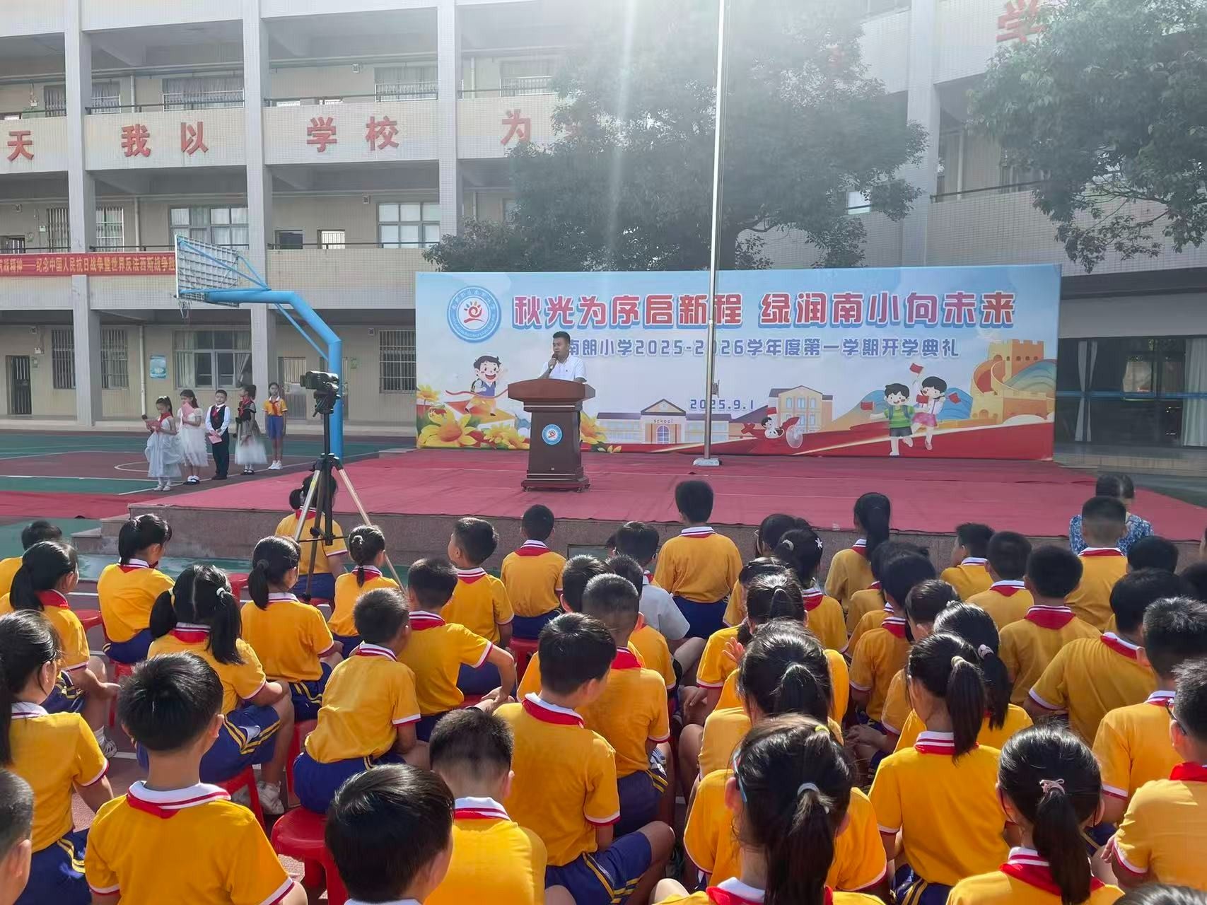 9月1日,中山南朗街道南朗小學舉行秋季學期開學典禮。開學典禮以紀念中國人民抗日戰(zhàn)爭暨世界反法西斯戰(zhàn)爭勝利80周年為主題,把愛國主義教育作為新學期的“開學第一課”,帶領(lǐng)同學們回望烽火歲月,弘揚偉大抗戰(zhàn)精神。 南朗街道南朗小學黨支部書記、校長杜少君為同學們講述了可歌可泣的抗戰(zhàn)故事。簡文祥 攝開學典禮上,南朗街道南朗小學黨支部書記、校長杜少君以《銘記偉大勝利,傳承抗戰(zhàn)精神——紀念中國人民抗日戰(zhàn)爭暨世界反法西斯戰(zhàn)爭勝利80周年》為題,講述了可歌可泣的抗戰(zhàn)故事,為全體師生上了一堂生動的思政第一課。 92歲的老校長程民興受邀來到學校,他以親歷者的身份為同學們講述校園經(jīng)歷的抗戰(zhàn)故事。簡文祥 攝南朗小學的前身是安定學校,也是1943年南朗安定戰(zhàn)斗的核心遺址?;顒赢斎?,92歲的老校長程民興受邀來到學校,他以親歷者的身份為同學們講述校園經(jīng)歷的抗戰(zhàn)故事,讓過去的歷史多了份可觸的溫度。“日本飛機轟炸安定學校時,瓦片碎裂的聲響至今仍在耳畔回響,那次轟炸,我險些沒能活下來?!彼嬖V同學們,日寇占據(jù)安定學校后,把兩層教學樓改造成堡壘,墻外布滿帶刺的鐵絲網(wǎng),槍口日夜對著村口;那時他就躲在閣樓里,親眼看見二樓窗口常年架著機槍,夜里探照燈掃過田野時,全村人都屏息凝神,不敢發(fā)出半點聲響。 如今,程民興的兒女們在國外生活,孩子們想要接他出國,但他卻執(zhí)意留在國內(nèi)。他告訴同學們:“你們看,咱們現(xiàn)在的日子多好啊——吃的、用的樣樣齊全,出門不管是坐車還是騎車,去哪兒都特別方便;再瞧瞧你們的校園,環(huán)境優(yōu)美,設(shè)備先進。同學們一定要珍惜這么好的學習環(huán)境,認真讀書,增長本領(lǐng),祖國的建設(shè)以后就要靠你們了?!?/p> 杜少君帶領(lǐng)孩子們到南朗小學操場保留的帶彈孔的殘墻,講述抗戰(zhàn)往事。簡文祥 攝 活動最后,杜少君特意帶領(lǐng)孩子們到南朗小學操場保留的帶彈孔的殘墻,觸摸那些深淺不一的彈痕。他指向殘墻旁生長的綠植說道:“這片曾被戰(zhàn)火灼燒的土地,如今已長出繁榮的新綠。烈士們用生命守護的家園,正在一代代人的手中變得更好?!庇|摸彈痕的那一刻,同學們仿佛在與歷史對話:傳承偉大抗戰(zhàn)精神,不是一句口號,而是要接過前輩的接力棒,在新時代為家鄉(xiāng)、為祖國奮斗。 校園操場、紅色地標、親歷者、戰(zhàn)斗遺址串聯(lián)起一堂行走的思政課。杜少君說:“讓孩子們在歷史現(xiàn)場觸摸過去,才能真正理解‘銘記’的意義。偉大抗戰(zhàn)精神的傳承,就藏在每一次駐足、每一次傾聽、每一次思考里?!?/p> 通訊員:于銳 簡文祥 ◆編輯:吳玉珍◆二審:鄭沛鋒◆三審:周亞平 文盾校對——用科技,守文字 |