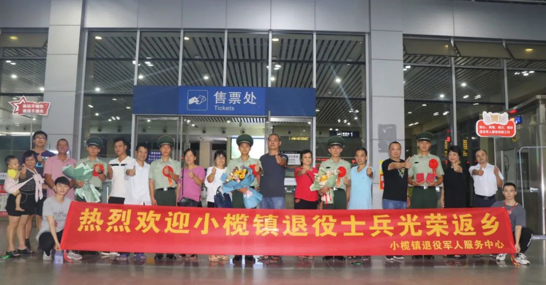 小欖鎮(zhèn)在小欖城軌站出口處設置迎接點歡迎退役軍人光榮返鄉(xiāng)
