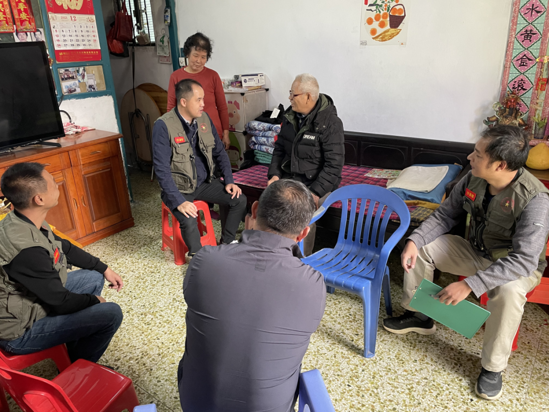▲沙溪鎮(zhèn)副鎮(zhèn)長(zhǎng)黃家樂帶隊(duì)到港園村走訪慰問困難退役軍人