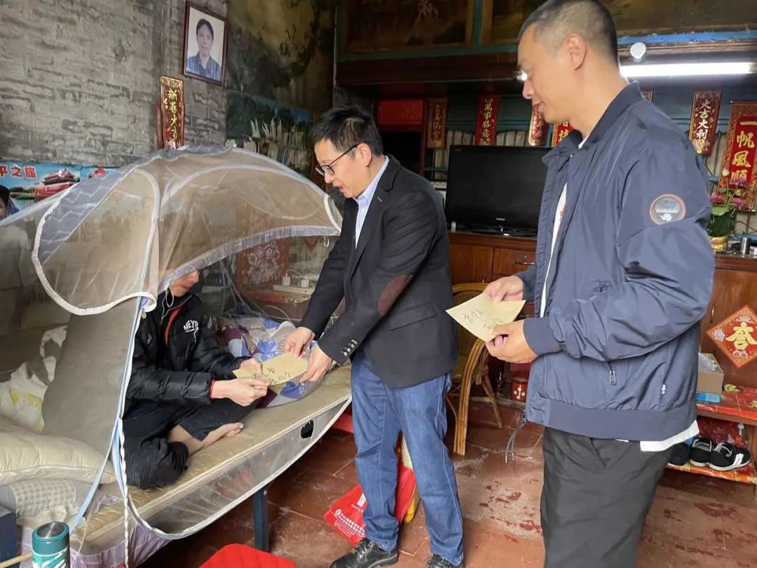 ▲沙溪鎮(zhèn)副鎮(zhèn)長(zhǎng)余添宏帶隊(duì)到涌邊村、中興村、匯源社區(qū)走訪慰問困難退役軍人