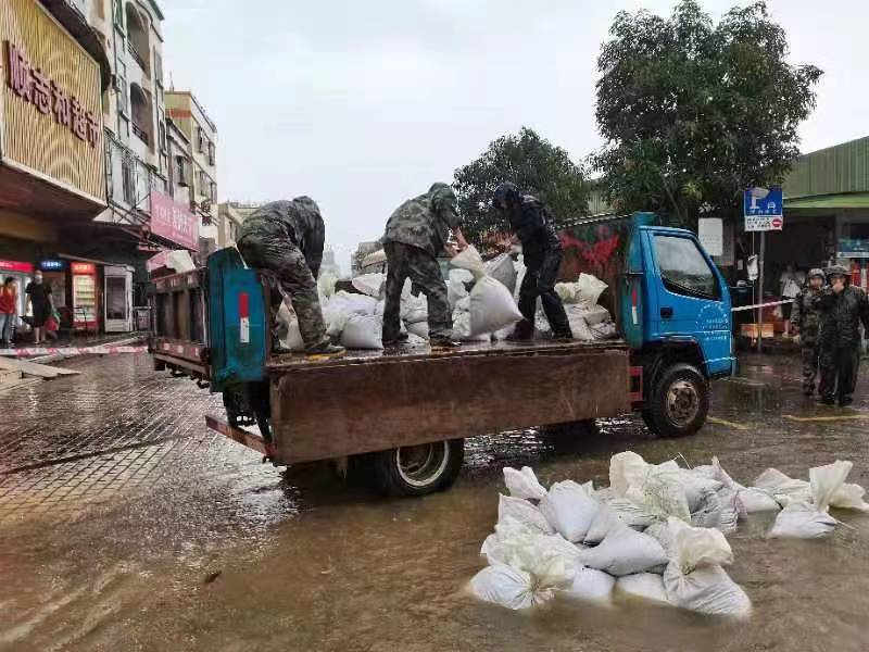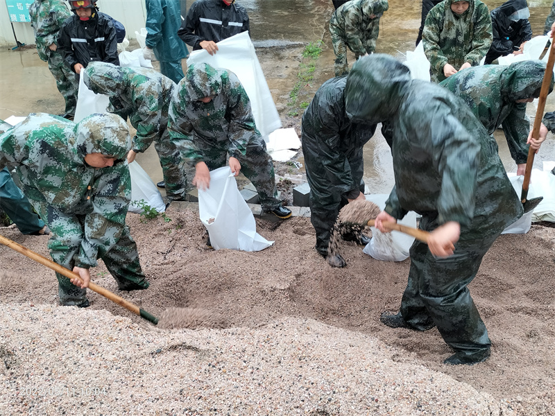 “我們已做好充分準(zhǔn)備,手電筒、救生衣、雨衣、膠鞋等防汛物資已準(zhǔn)備就緒,24小時(shí)防汛值班,隨時(shí)待命,確保防汛工作有序進(jìn)行?!蔽骞鹕轿溲b部相關(guān)工作人員呂兆彬介紹,上午9時(shí)許,南橋新村出現(xiàn)內(nèi)澇情況,村里所屬民兵已就近動員,前往現(xiàn)場參與處置。 同時(shí),中山軍分區(qū)要求各鎮(zhèn)街民兵應(yīng)急分隊(duì)迅速收攏人員,積極參與本鎮(zhèn)街、村防汛救災(zāi)工作,在防汛搶險(xiǎn)一線打響“保衛(wèi)戰(zhàn)”,全力以赴保障人民群眾生命財(cái)產(chǎn)安全。中山軍分區(qū)相關(guān)負(fù)責(zé)人介紹:“前幾天,我們都已經(jīng)指導(dǎo)各鎮(zhèn)街武裝部對防汛裝備器材進(jìn)行了檢修,并結(jié)合民兵應(yīng)急分隊(duì)集中輪訓(xùn)開展了防汛應(yīng)急演練?!?/p>  ▲圖為神灣鎮(zhèn)民兵在裝沙袋,準(zhǔn)備堵住內(nèi)澇道路。(通訊員 吳容照 攝)