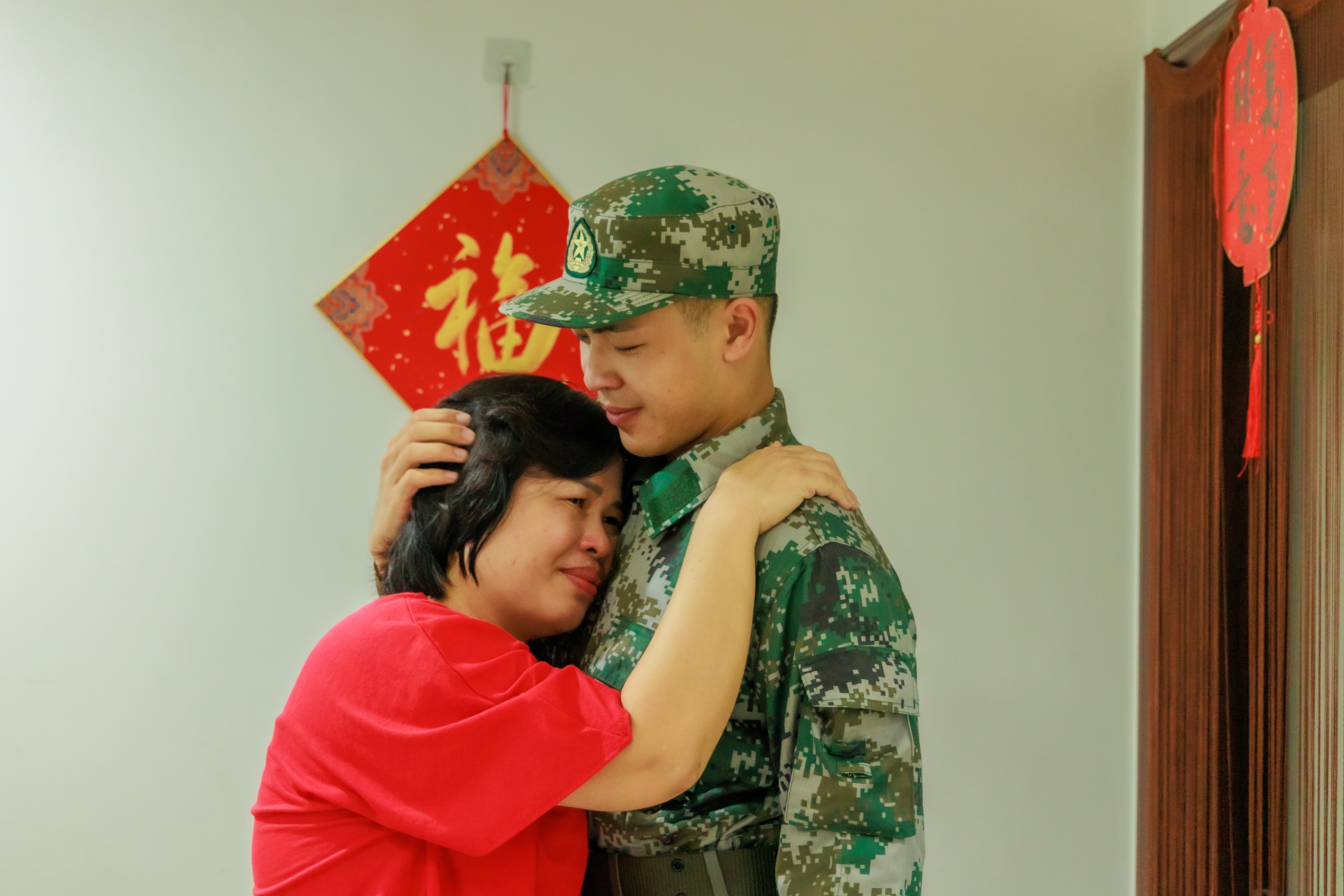 楊尚霖與母親惜別。馬衛(wèi)星 攝 2002年出生的楊尚霖來自東區(qū)街道東裕社區(qū)。小時候,楊尚霖就跟著家里人看抗戰(zhàn)、軍旅題材的電視劇。耳濡目染之下,他羨慕軍人擁有鋼鐵般的意志。他的外公是一名退役軍人,老人家最大的愿望便是4個孫子中有人能夠參軍報國。外孫楊尚霖是家中最小的,3個哥哥因種種原因都遺憾無緣軍營。外公將后輩的從軍夢寄托在了楊尚霖身上。