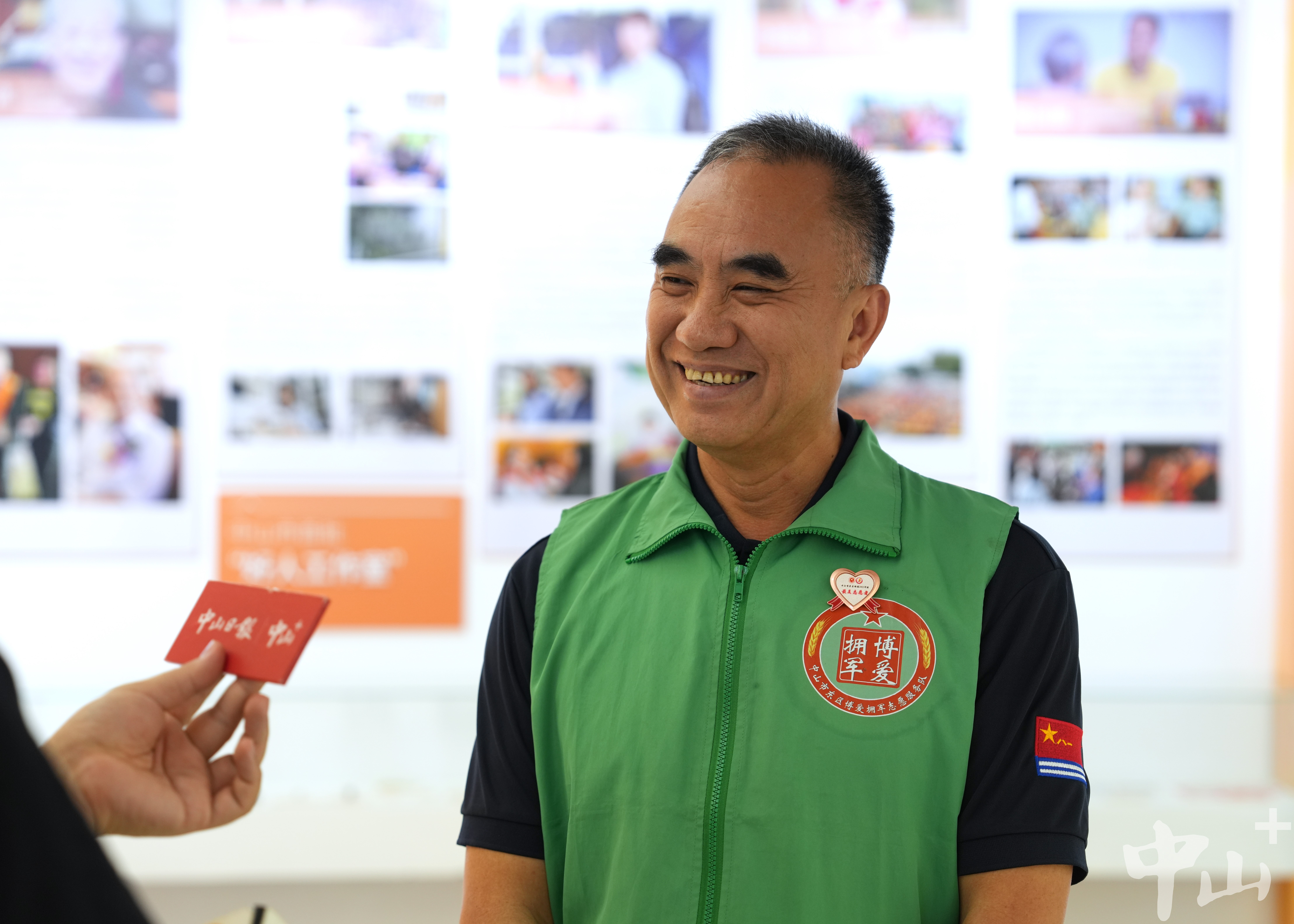 作為一名退伍軍人,李克有很多曾一起在戰(zhàn)場上出生入死的戰(zhàn)友,其中不乏已經(jīng)為國捐軀的烈士。自2007年起,他便自發(fā)組織尋找犧牲的中山籍戰(zhàn)友,先后6次帶隊(duì)前往廣西邊境的多個烈士陵園,成功尋到29名犧牲戰(zhàn)友信息,并將相關(guān)信息報送給中山市退役軍人事務(wù)局。 “我有一位戰(zhàn)友,寧愿把生的希望留給其他人,19歲不到就犧牲在戰(zhàn)場上。他們已經(jīng)離我們而去,更重要的是我們能為他們做些什么。所以逢年過節(jié)我都會看望他們的家人,把歡樂也帶給老人家?!崩羁苏f。 2016年,得知戰(zhàn)友的女兒患先天性心臟病,須進(jìn)行心肺聯(lián)合移植手術(shù),李克立即帶頭捐款,并聯(lián)系政府相關(guān)部門和電視臺,通過媒體報道讓更多愛心人士關(guān)注到了這位困難老兵。在他的多方奔走下,社會各界紛紛伸出援助之手,募集醫(yī)藥費(fèi)40余萬元,助戰(zhàn)友的女兒順利完成了手術(shù)。 牽頭成立志愿服務(wù)隊(duì) 延續(xù)志愿精神 作為一名有著30多年志愿服務(wù)經(jīng)歷的資深志愿者,李克的生活已經(jīng)與志愿分不開。他的身上始終有一抹綠色:在軍營,是守衛(wèi)國門的綠軍裝;在社區(qū),是服務(wù)群眾的綠馬甲。在人民群眾需要的地方,李克每次都沖在最前線。 “2020年疫情暴發(fā)時,很多人都響應(yīng)號召待在家里,我覺得作為一個打過仗的老兵,我總得站出來做點(diǎn)事?!睕]有過多考慮,李克第一時間加入到了志愿者隊(duì)伍中,并在社區(qū)堅守了整整60天。當(dāng)時防護(hù)物資匱乏,李克還自掏腰包托人在廣州購買了6萬元左右的防護(hù)物資,全部捐贈給了在一線抗疫的工作人員。 近年來,李克還積極捐資助學(xué)、支援災(zāi)區(qū)、扶危濟(jì)困,連續(xù)6年資助6名困難學(xué)生,為汕尾市陸河中學(xué)捐贈10套多媒體電腦設(shè)備,堅持參與無償獻(xiàn)血直到60歲。 2018年起,李克擔(dān)任文明城市巡查監(jiān)督員,奔走在街道各個路口、每條小巷,整理亂停亂放的共享單車,清理“牛皮癬”小廣告,保障街頭巷尾干凈衛(wèi)生。同一年,為更有組織地開展志愿活動,李克牽頭成立了一支以退役軍人為主導(dǎo)的東區(qū)博愛擁軍志愿服務(wù)隊(duì),把戰(zhàn)友們凝聚在一起,共同為社會作貢獻(xiàn)。如今,這支志愿服務(wù)隊(duì)已從最初的8名成員,逐漸壯大至400多人,成為服務(wù)社會的一支生力軍。 講好好人故事,傳承紅色文化 4月19日上午,記者在“中山好人館”見到了正在擔(dān)任“輪值館長”的李克。從去年1月開始,他每個月都參與輪值,先后為140多場活動、1萬多名市民群眾義務(wù)講解博愛之城的凡人善舉、好人大愛。  正在中山好人館輪值的李克。記者 劉萬杰 攝