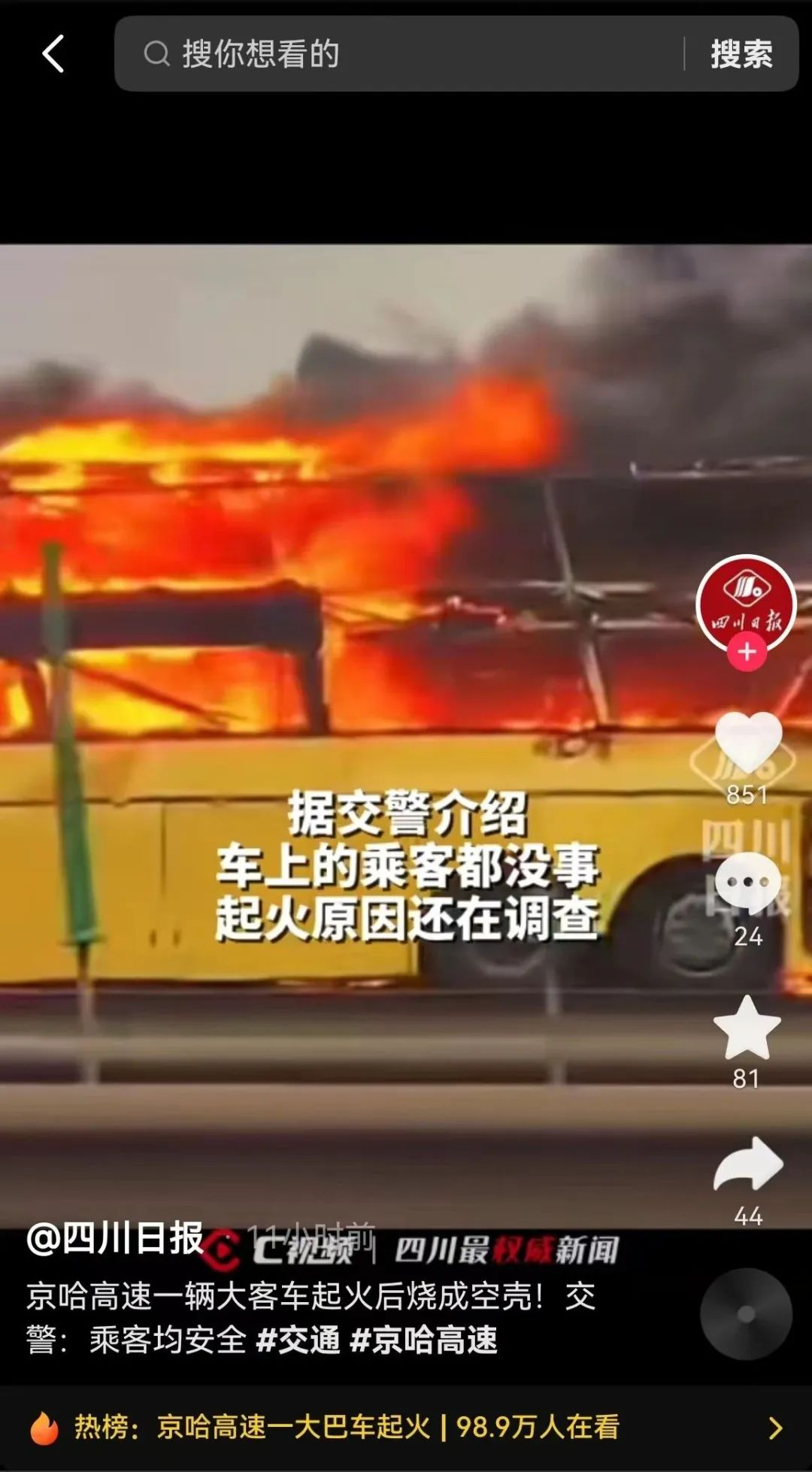 2月21日,有網(wǎng)傳信息稱“重慶高速一大巴起火被燒成鐵架”,被個(gè)別媒體轉(zhuǎn)發(fā),引發(fā)網(wǎng)友關(guān)注。經(jīng)核實(shí),網(wǎng)傳信息為不實(shí)信息。