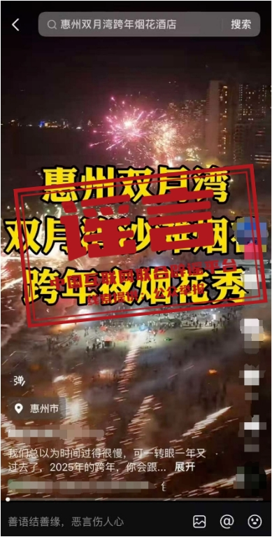 謠 言 廣東惠州雙月灣將舉辦跨年夜煙花秀?