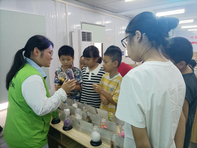 活動當天,雖然天氣有些炎熱,但絲毫沒有影響村民帶著小朋友參與的熱情。禁毒社工向小朋友展示了各類毒品仿真品,講解道:“小朋友,你看這些仿真品,表面上是‘奶茶’‘跳跳糖’‘巧克力’等,實際上它們都是毒品的‘偽裝術(shù)’,千萬別輕信陌生人的話語和食物?!彪S后,有獎問答環(huán)節(jié),社工發(fā)放禁毒宣傳單,小朋友的積極性最高,他們拿著小獎品,認真地聽社工講解禁毒知識。